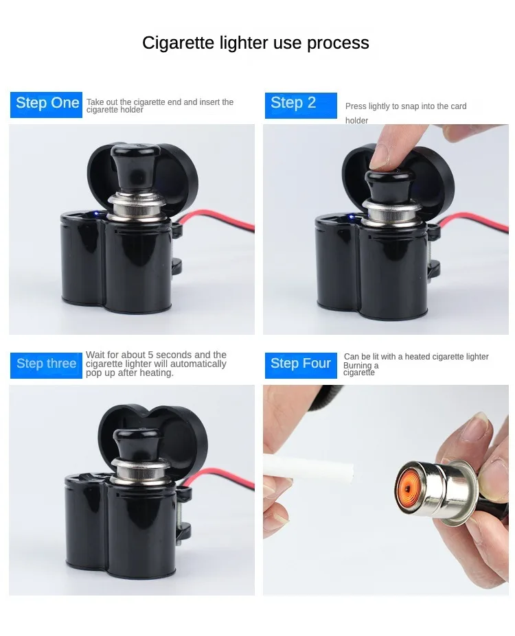 Incluye cargador USB, encendedor de cigarrillos, interruptor de encendido/apagado. Ahorra más espacio, es más fácil de usar y más funcional.