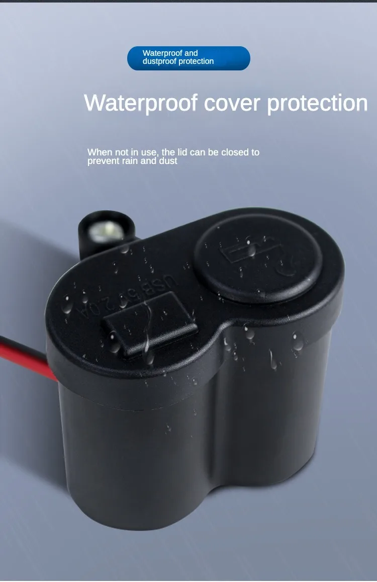 Viene con una tapa impermeable de doble puerto USB y una tapa impermeable para la interfaz del encendedor, con cubierta resistente al agua y al polvo, completamente adecuada para uso en exteriores.