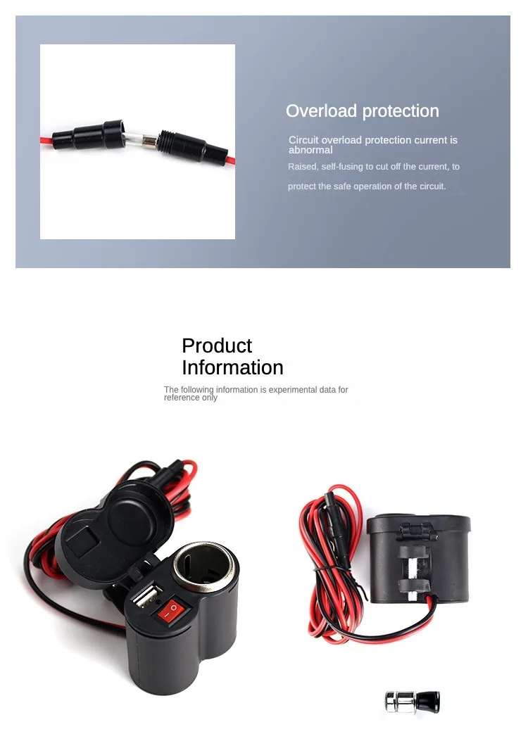 Tipo de artículo: Cargador USB para motocicleta + toma de corriente de 12V